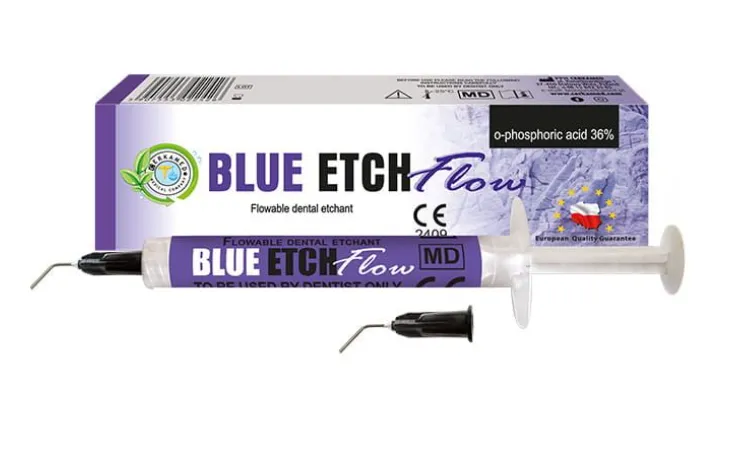 Leptací gel BLUE ETCH v modrém odstínu se používá k leptání skloviny a dentinu před použitím kompozitních materiálů, pečetidel a laků. Nestéká z povrchu zubu.