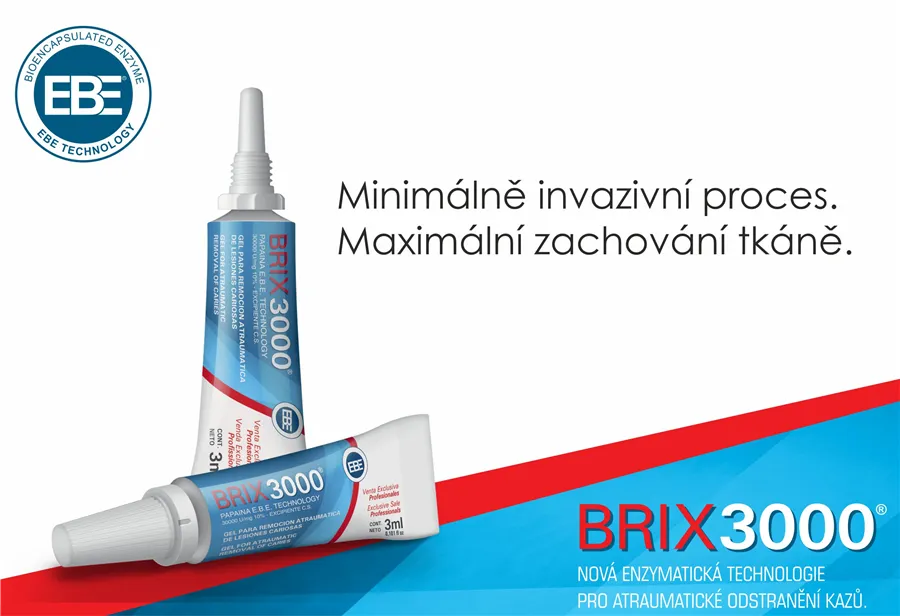 Použití enzymatického gelu BRIX®3000 - Tento gel během svého působení na infikované tkáni mění svůj vzhled i kvalitu. Gel se zkalí a stane se takový "matlavý". A když ho exkavátorem odstraníme, odstraníme infikovanou tkáň. Po odstranění musí být povrch kavity tvrdý. Pak je možné kavitu zaplnit.