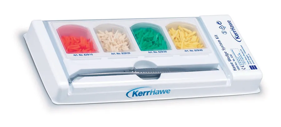 Optimálně anatomicky tvarované dřevěné klínky pro perfektní adaptaci matric k zubu. Velikosti: mini (č. 05), oranžové (č. 06), bílé (č. 07), zelené (č. 08), žluté (č. 10), modré (č. 11), červené (č. 12), bílé široké (č. 13) a sortiment (č. 14). Set obsahuje: 4 x 250 ks klínků a speciální pinzetu.