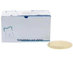 Termoplastické fólie firmy Erkodent pokrývají široké spektrum použití v dentálních laboratořích i ordinacích. Jsou zhotoveny z různých druhů materiálů v odlišných sílách pro jednotlivé aplikace. Všechny fólie mají atest biokompatibilty dle DIN/EN 30993-1. Použití: Nosiče na bělení a fluoridaci, chrániče pro sportovce, dublování, pozicionéry. Vlastnosti: Gumově měkký materiál, může být spojován pomocí horkovzdušné nebo tavicí pistole, neváže se s akrylátovými pryskyřicemi, tvrdost Shore A 82. Balení: 10x fólie Erkoflex transparentní, tloušťka 4,0 mm, průměr 120 mm / Výrobce: Erkodent