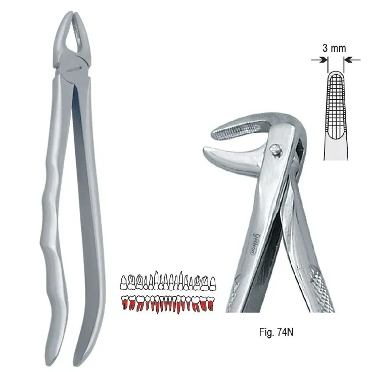 Extrakční kleště pevné konstrukce s ergonomicky tvarovanými branžemi se speciálním drážkováním na če...