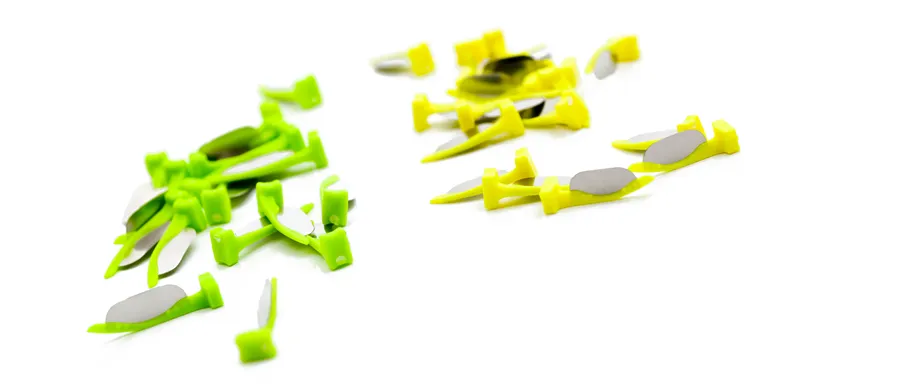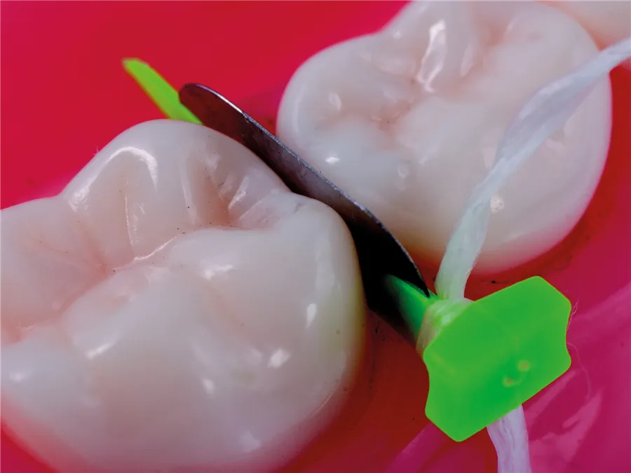 Před výplní je možné klínek a plátek ohnout a tak adaptovat podle tvaru zubu.