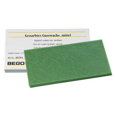 Fóliový licí vosk zelené barvy se dodává v různých sílách a dvou formách – hladký nebo rastrovaný. Hladký fóliový licí vosk se snadno adaptuje, pevně drží a spaluje se beze zbytku. Rastrovaný fóliový licí vosk je určený pro modelaci bází horních částečných náhrad. Rastrování dává povrchu přirozený vzhled.