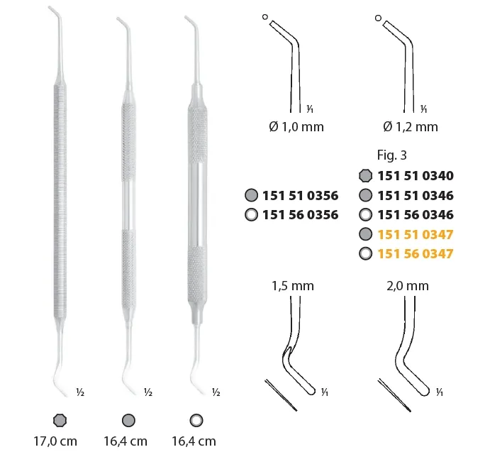 Oboustranný restorativní ruční nástroj s ergonomicky tvarovanou silikonovou rukojetí oranžové barvy...