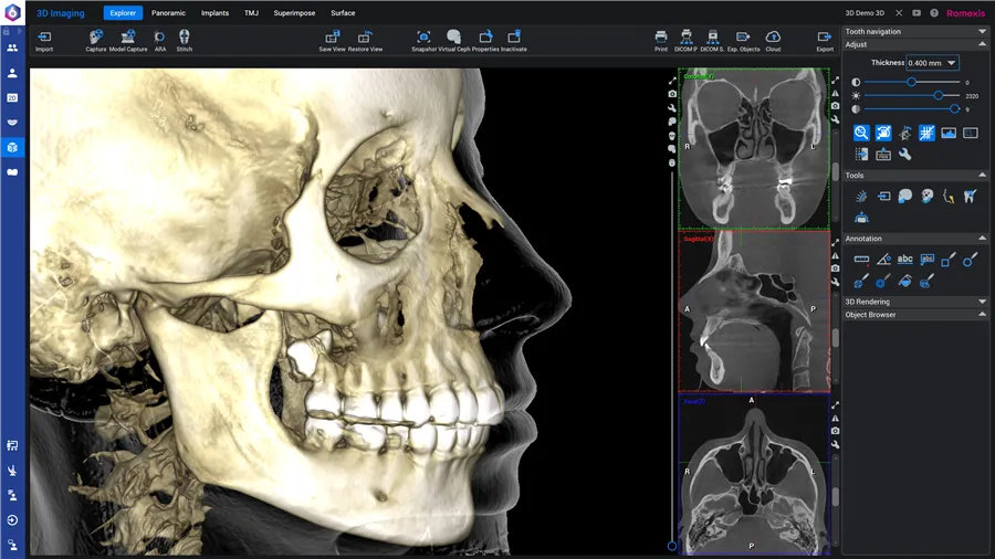 Řada produktů KaVo ProXam 3D nabízí ucelený sortiment zobrazovacích programů 2D a 3D: Kromě standardních panoramatických programů 2D je k dispozici program extraorálního skusu, režim pro horizontální a vertikální segmentaci, program Ceph a speciální dětský režim.