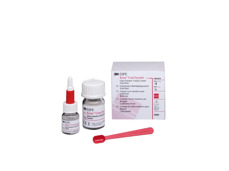Skloionomerní fixační cement pro cementování kovu nebo metalokeramiky. Granulovaná forma umožňuje snadné a rychlé míchání a přesné dávkování. Vysoká okrajová integrita a nízká rozpustnost, extrémně tenká síla vrstvy. Úvodní balení obsahuje: 30 g prášku, 12 ml tekutiny, dávkovací odměrku a míchací podložky. Klinické balení obsahuje: 3 x 30 g prášku, 3 x 12 ml tekutiny, dávkovací odměrku a míchací podložky.