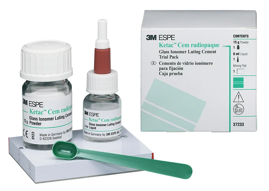Skloionomerní, fixační cement pro inleje, onleje, korunky, můstky, kořenové čepy, dlahy a ortodontické brekety.