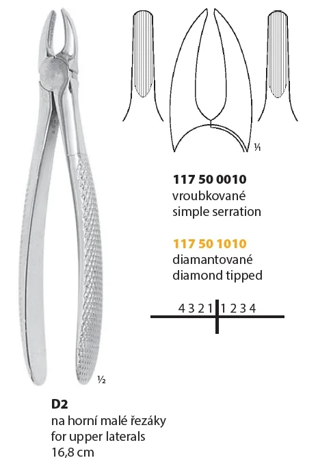 Extrakční kleště pevné konstrukce s ergonomicky tvarovanými branžemi se speciálním drážkováním na če...