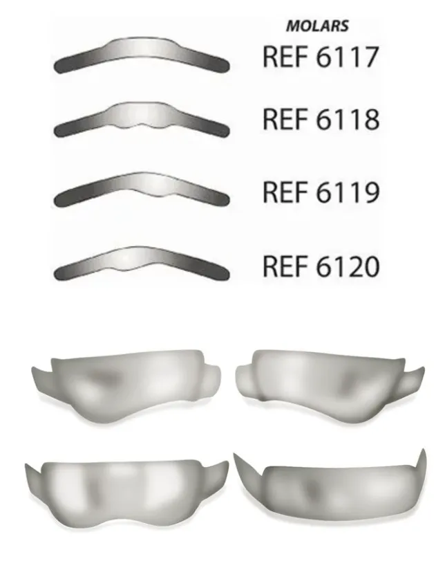 • Anatomicky tvarované matrice z nerezové oceli o tloušťce 0,045 mm.