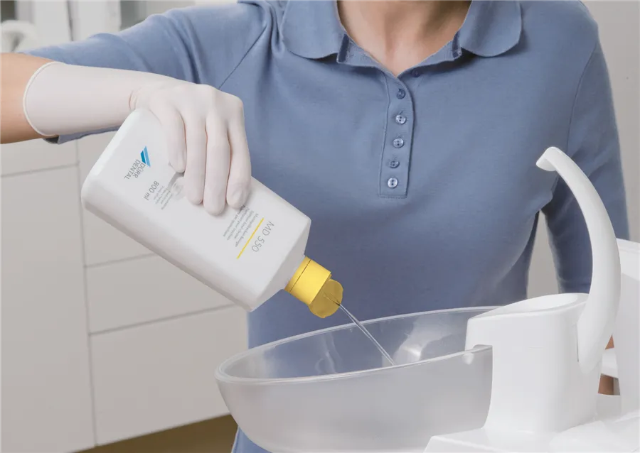 • Hotový bezaldehydový roztok k čištění a údržbě plivátek zubních souprav s antimikrobiálním účinkem.
