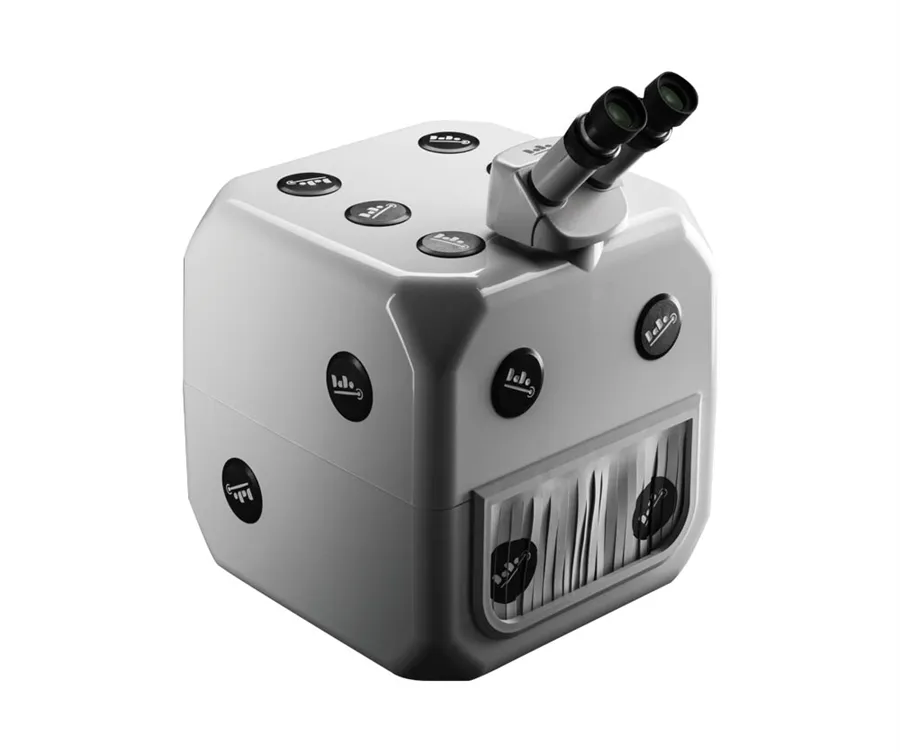 Ovládání je možné přes mobilní aplikaci, ale není to nutné. Mikroskop s 10nás. zvětšením. Proměnlivá barva LED ve svařovací komoře je indikátorem stavu laseru. Stejné diody LED mění barvu související s pracovním stavem laseru: pohotovostní režim, v režimu nízké nebo vysoké spotřeby.