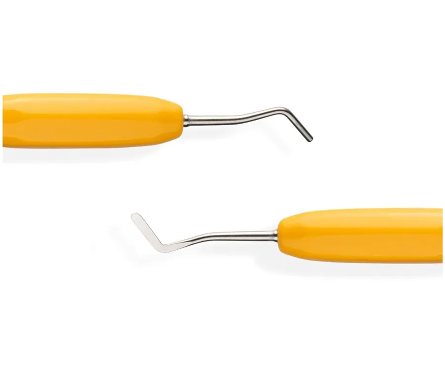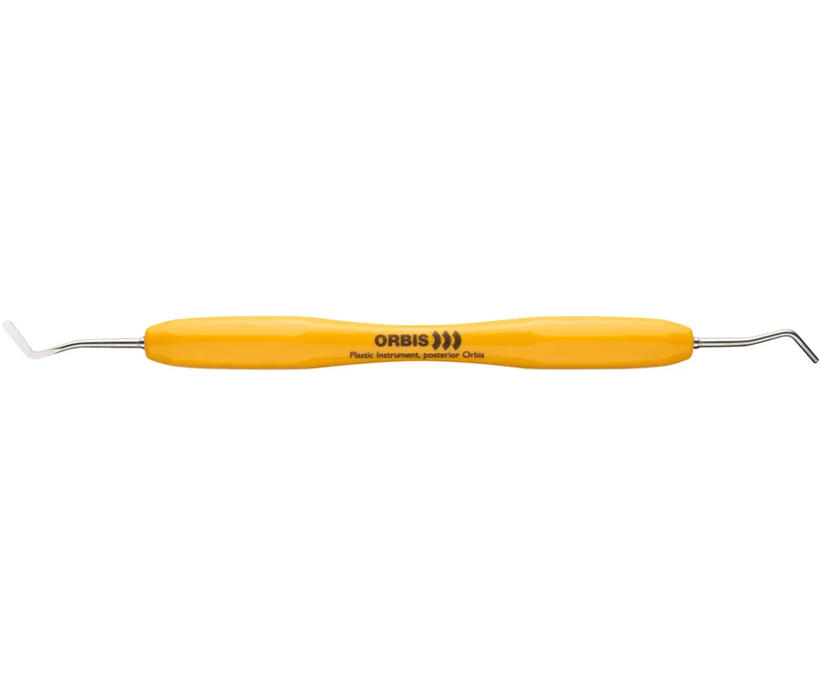 Oboustranný restorativní ruční nástroj s barevně odlišenou, ergonomicky tvarovanou