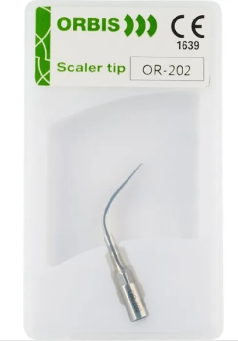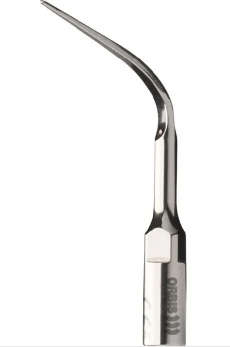 Perio. OR-60 je dlouhý, rovný hrot se zaoblenými povrchy, který se používá k jemnému čištění kapes během parodontologického ošetření. Používá se ve frontální oblasti, je účinný na hladkých površích a k čištění kapes do hloubky 9 mm.