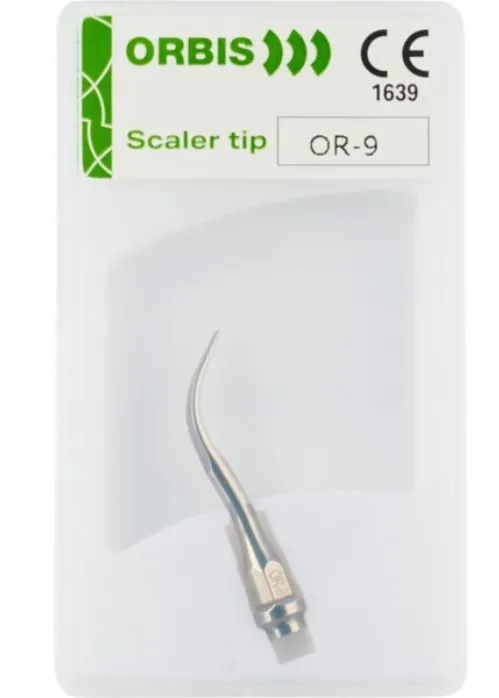Perio. OR-60 je dlouhý, rovný hrot se zaoblenými povrchy, který se používá k jemnému čištění kapes během parodontologického ošetření. Používá se ve frontální oblasti, je účinný na hladkých površích a k čištění kapes do hloubky 9 mm.
