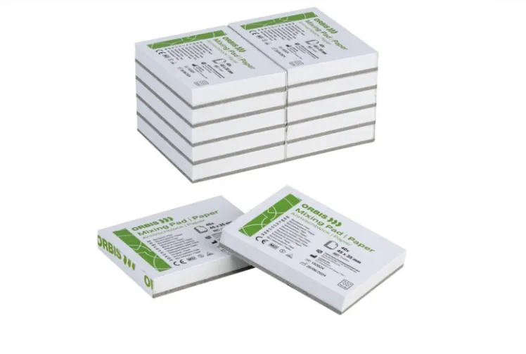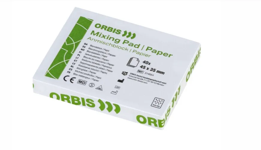 ORBIS míchací podložky jsou vyrobeny ze speciálního, oboustranného, otěruvzdorného, vysoce bílého papíru nebo čistého pergamenu a jsou spojeny na 2 nebo 3 stranách v závislosti na velikosti bločku. Protiskluzové varianty mají patentovanou protiskluzovou spodní stranu a tím je dosaženo lepší manipulace během míchání.