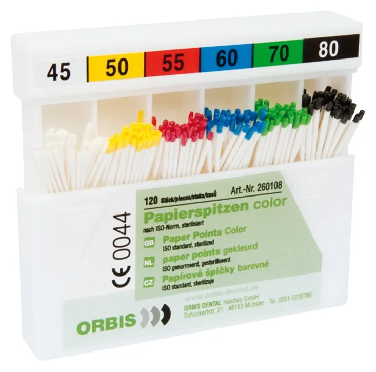 Papírové čepy jsou vyrobeny z extrémně savého papíru bez chemických přísad a pojiv. K optimálnímu vysušení kořenových kanálků po přesné preparaci normovanými nástroji.