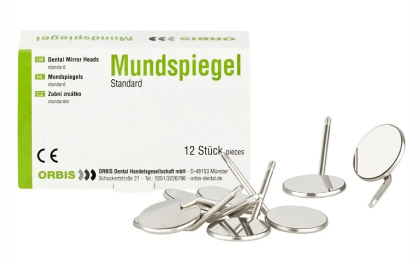 Držátko zubního zrcátka, kulaté duté, nerez, délka 13 cm.