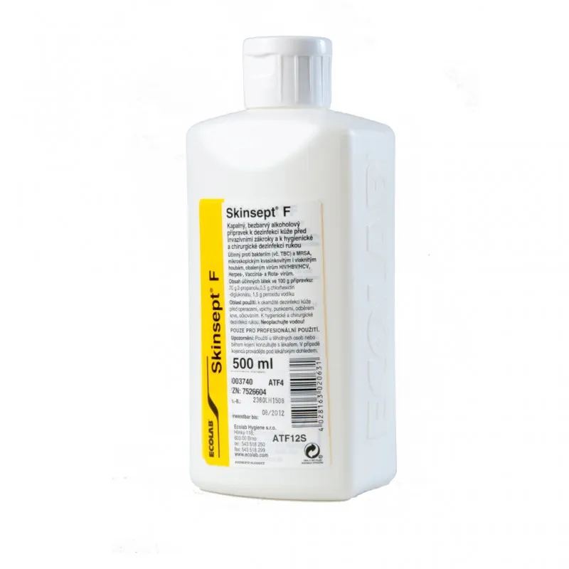 SKINSEPT F je bezbarvá dezinfekce k dezinfekci pokožky před injekcemi, punkcemi nebo operačního pole. Neobsahuje jód a neředí se. Je účinná proti bakteriím včetně MRSA, proti kvasinkám a rotavirům. Poskytuje bezpečnou dezinfekci rukou a kůže i v rizikových oblastech. Lze použít u pacientů s alergií na jód. Používejte biocidy bezpečným způsobem. Před použitím si vždy přečtěte označení a informace o přípravku.