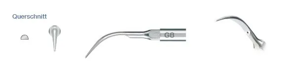 Tenký konec špice je určen pro supragingivální jemný scalinga interdentální scaling. Kruhový průřez ...