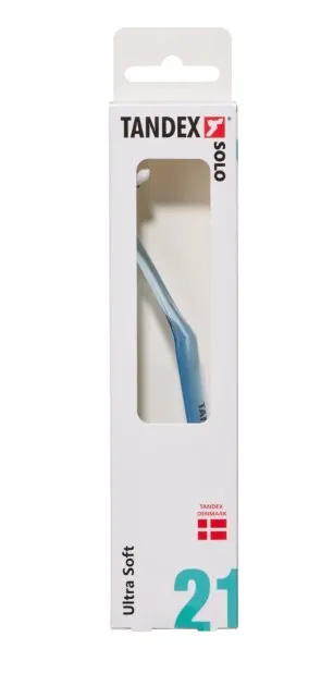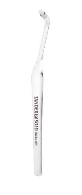 Profesionální jednosvazkový kartáček TANDEX SOLO s krátkým zaobleným zástřihem snopce vláken je určený pro dočišťování dásňového žlábku, obtížně dosažitelných míst a čištění v úsecích, kde běžný kartáček vyvolává dávivý reflex.