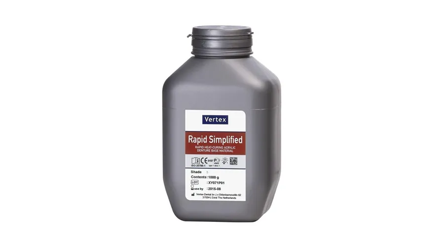 Vertex Rapid Simplifield je pryskyřice na bázi polymetylmetakrylátu určená na výrobu protéz, která polymerizuje za tepla a používá se na kyvetovou stlačovací techniku. Jedná se o dvousložkový systém skládající se z kapaliny a prášku, tedy z monomeru a polymeru.