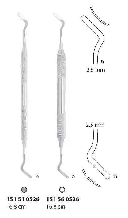 • Oboustranné nerezové nástroje určené pro umísťování retrakčního vlákna kolem zubu. Strukturovaná rukojeť pro pohodlný neklouzavý úchop.